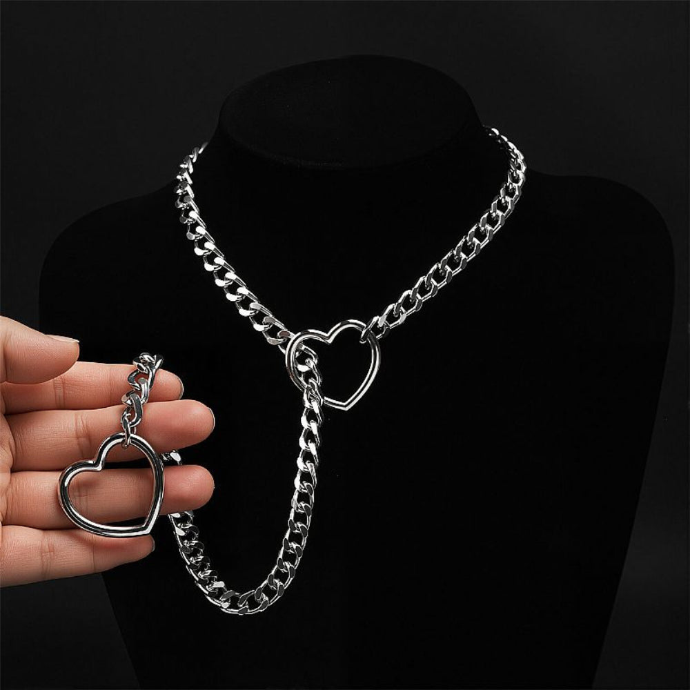 O design é composto por uma corrente metálica resistente e duas argolas em formato de coração, representando o equilíbrio entre poder e carinho — perfeita para jogos de submissão, amor e desejo. Pode ser usada sozinha ou combinada com outros acessórios fetichistas, criando uma experiência visual e sensorial inesquecível.
