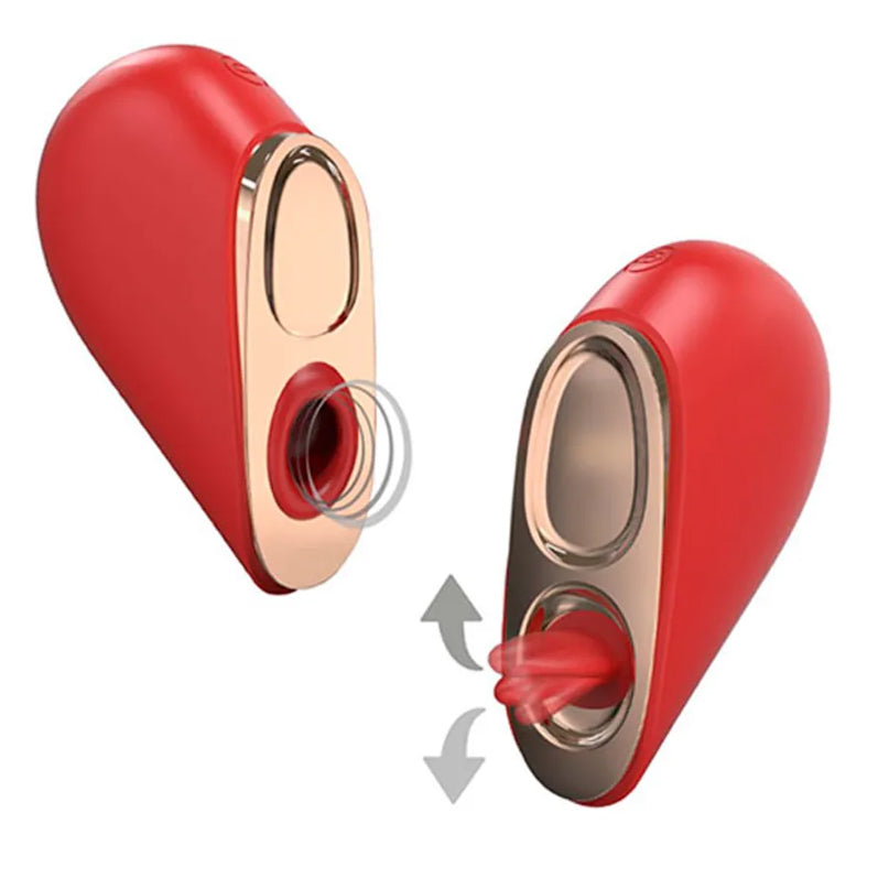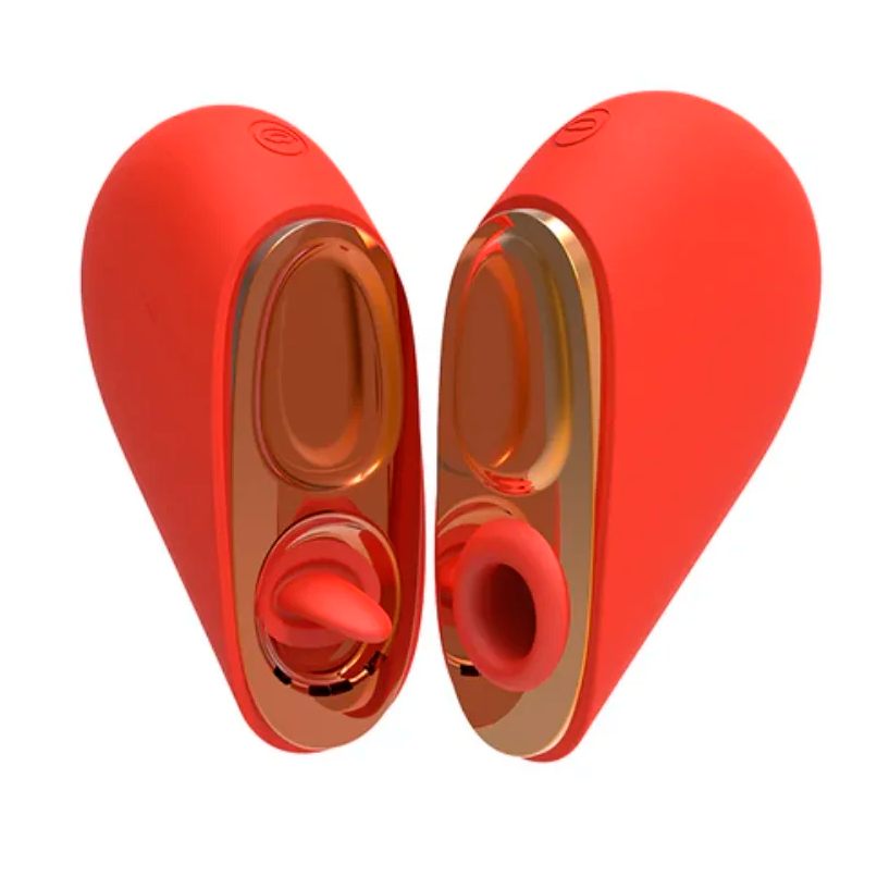 Estimulador clitoriano duplo, sendo: Um estimulador língua mágica com 5 modos de vibração, e um estimulador por ondas de pressão com 5 modos de estimulação.