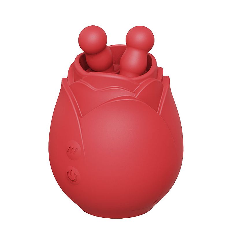 Rosa estimuladora, feita em material macio de toque agradável e fácil limpeza.