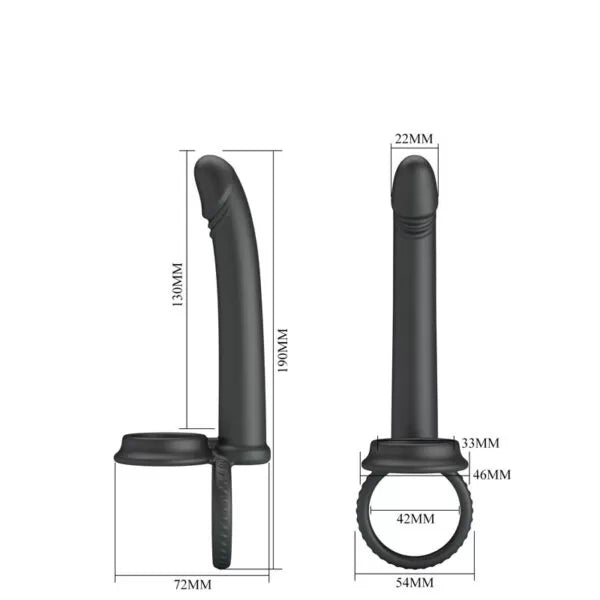 Produto: 19×2,2×5,4 cm Diâmetro: 2,2 cm Diâmetro anéis: 3,3~4,2 cm Penetráveis: 13 cm Material: Silicone.