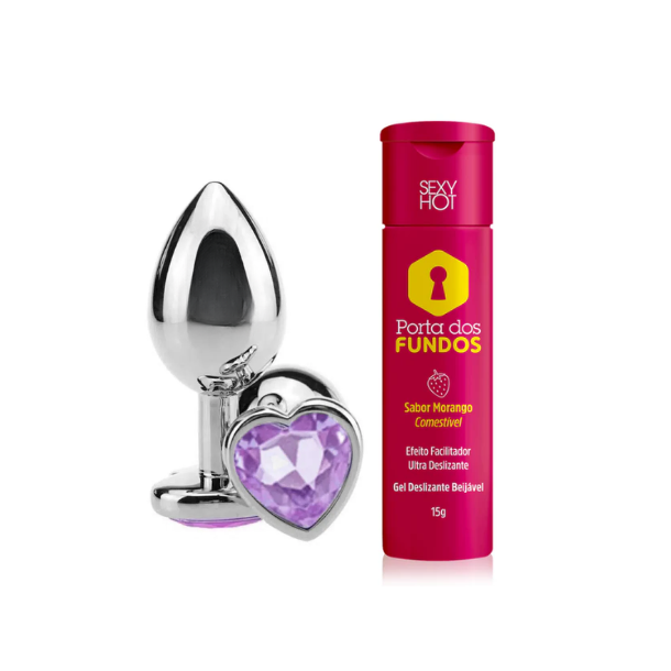 Kit Porta dos Fundos - Gel Anal + Plug com Joia de Coração Tamanho M
